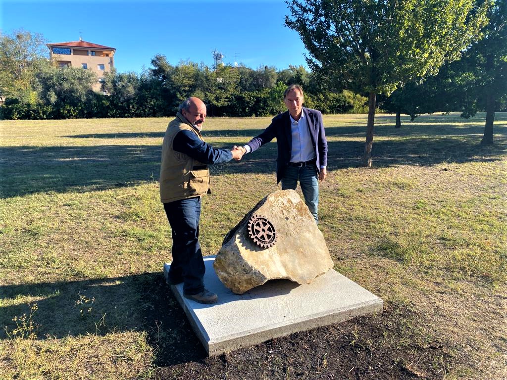 La pietra, oggi con due emblemi rotariani, è stata ripulita e collocata su un nuovo basamento di cemento armato