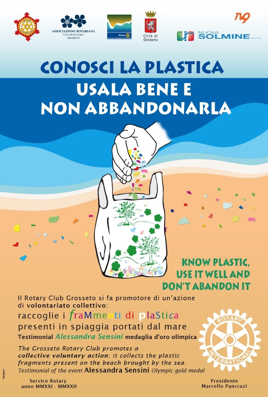 "Siamo al primo passo di un progetto rotariano del Club di Grosseto sulla raccolta delle microplastiche presenti sulle spiagge che avrà madrina d'eccezione Alessandra Sensini, leggenda del windsurf, legata al nostro territorio e sensibile alle problematiche dell'ambiente e del mare in particolare." E' quanto affermato dall'intraprendente presidente Marcello Pancrazi che, sostenuto dall'entusiasmo del Governatore Fernando Damiani, proseguirà con il suo progetto, facendosi promotore anche di una iniziativa che verrà presentata al XXXIX Forum della Fascia Costiera Ligure Tirrenica e del Mar di Sardegna il prossimo 2-3 Aprile. Quindi non basta porre attenzione e concentrarsi solo sui cambiamenti climatici e sulla riduzione delle emissioni inquinanti per contenere il riscaldamento del pianeta, ma bisognerà prendersi cura anche della emergenza rappresentata dai rifiuti di plastica, la cui pericolosità per la salute dell'uomo e dell'ambiente, è dimostrata ormai da numerosi studi scientifici. Non nasce per caso allora l'interessante convegno di Scarlino al quale aderiranno esperti del settore, con l'intento di individuare ruoli ed iniziative adottate dagli organi istituzionali e da parte della produzione industriale supportata dalla comunità scientifica.