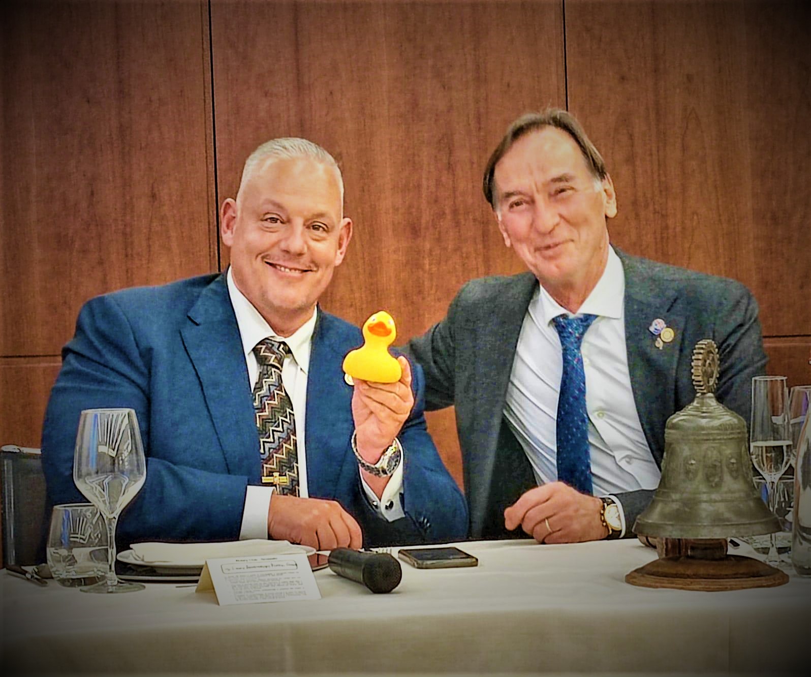 Nella foto sotto il sindaco Vivarelli Colonna con una paperella di plastica per simboleggiare il ricordo dell'incidente.