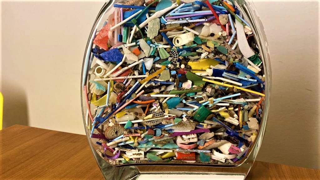 Questa foto mostra frammenti di plastica raccolti su una delle nostre spiagge in poco più di mezz'ora