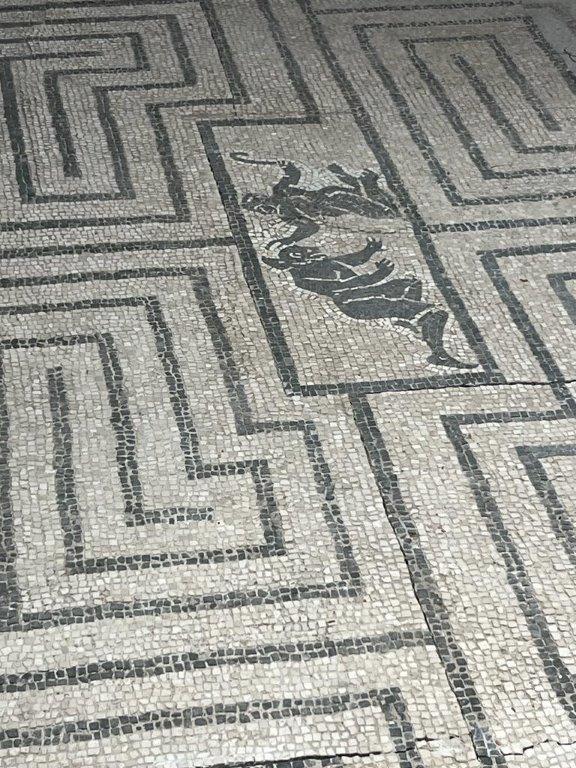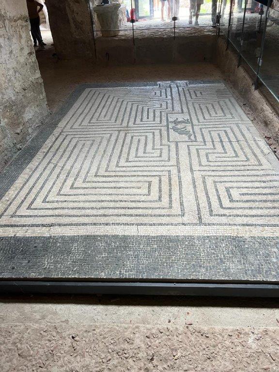 Il Mosaico del Labirinto era il reperto più prezioso delle stanze decorate da mosaici geometrici all’interno della Villa Romana, dimora che fu quartier generale per i velieri in transito nei mari e per l’otium dei nobili romani del I secolo dopo Cristo.