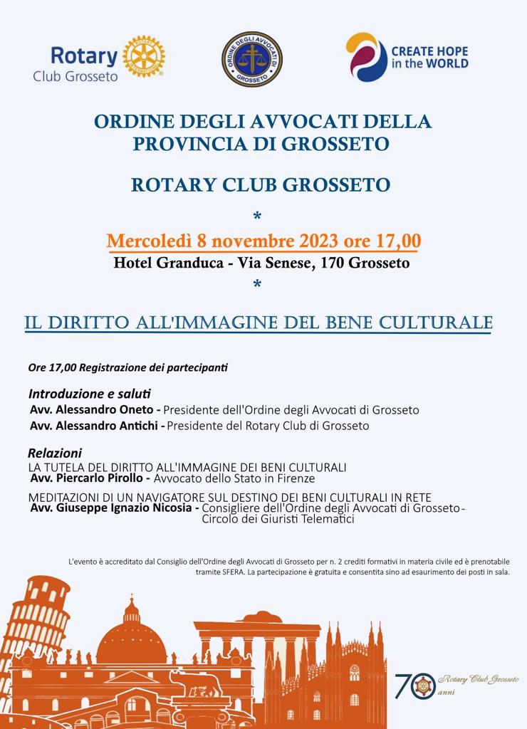 Mercoledi 8 novembre, alle ore 17.00, presso l'Hotel Granduca di Grosseto in via Senese 170, si discuterà del diritto all'immagine del bene culturale