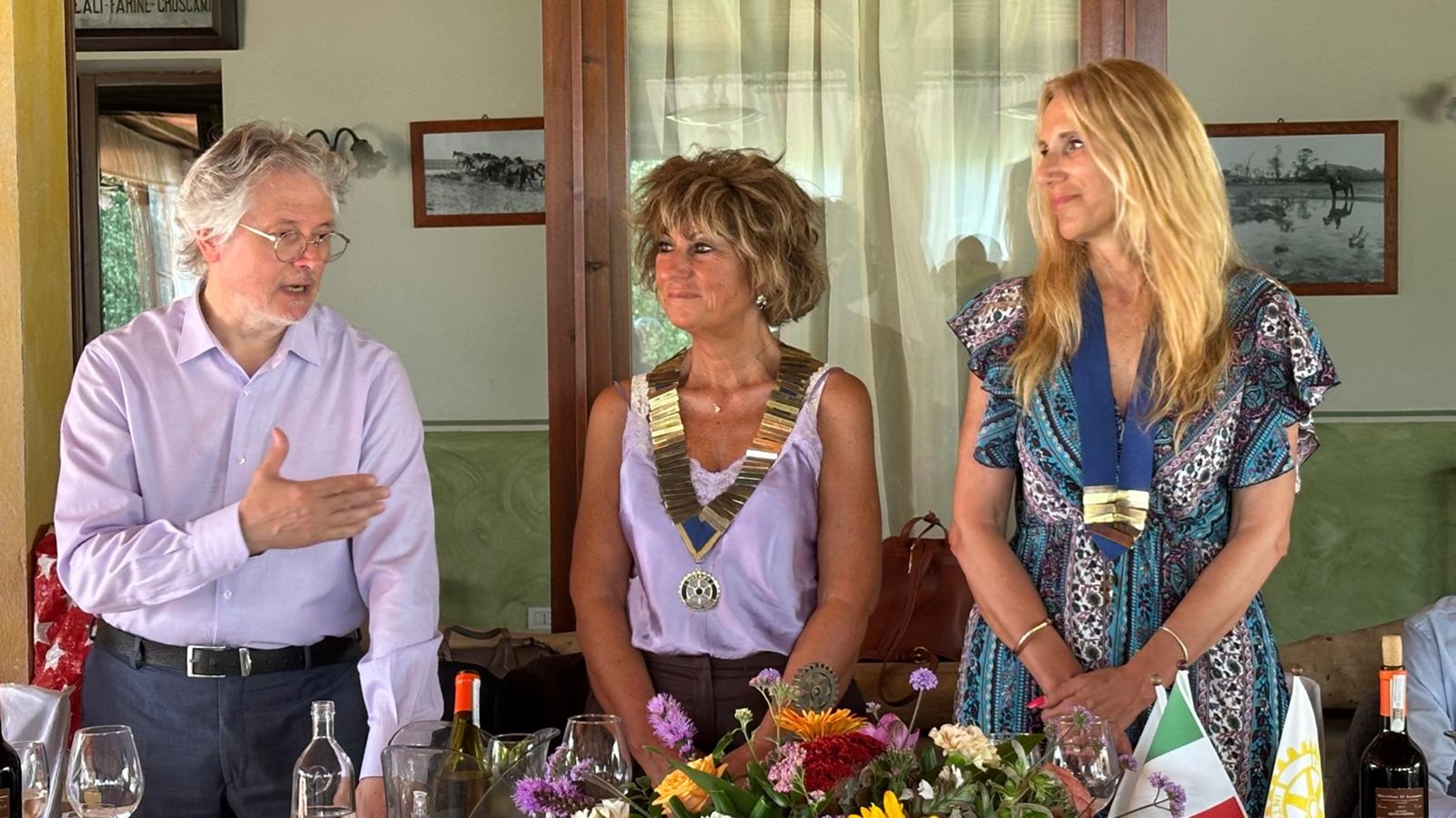 All’evento, che ha avuto come splendido sfondo il Parco Naturale della Maremma, nei pressi di Grosseto, oltre al Governatore Belli e alle Presidenti dei due Club, Barbara Chelli e Benedetta Podestà, ed agli Assistenti dei Governatori, Alessandro Cellini ed Enza Liviero, è intervenuta una foltissima delegazione di rotariani di Roma e Grosseto, oltre al Prefetto Distrettuale Stefano Londrillo, il Presidente incoming del Club Cristoforo Colombo, Fiorella Quattrociocchi, il Presidente eletto per l’annata 2026-2027, Alessandro Saieva e il Past Governatore Roberto Giorgetti, al Presidente del Rotary Club Arezzo Giovanni Linoli ed altri amici del Distretto 2071.