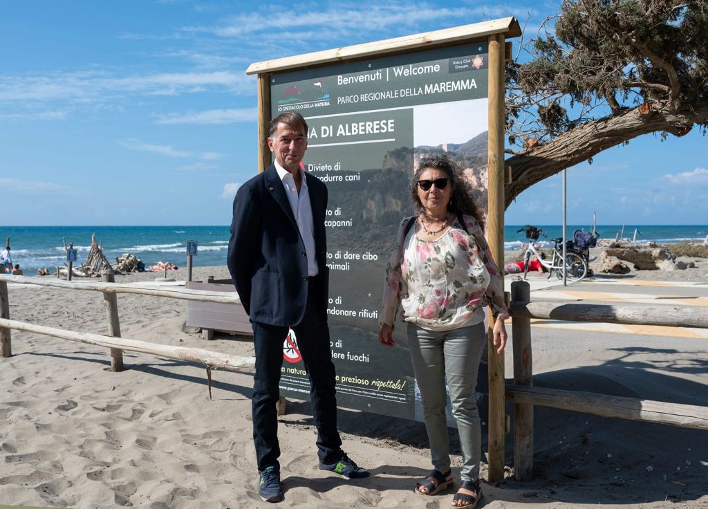Domenica 3 ottobre 2021, sulla spiaggia di Marina di Alberese, Il Presidente del club grossetano Marcello Pancrazi, insieme alla Presidente del Parco Naturale della Maremma, Lucia Venturi, hanno illustrato e presentato ai convenuti, la nuova cartellonistica realizzata dal Rotary, con lo scopo di far conoscere meglio il parco e viverlo correttamente nel rispetto della natura.