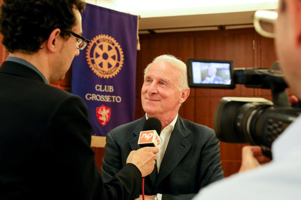 Giovanni Trapattoni, 77 anni, famoso per la leggenda che lo vorrebbe essere stato l'unico difensore che riuscì a bloccare lo storico asse del Brasile, Pelè ( Italia -Brasile 3-0, Milano 12 maggio 1963) è stato tra noi in una piacevole conviviale, alla presenza di numerosi ospiti e amici. La semplicità e la modestia del grande campione, hanno colpito tutti i presenti, soprattutto i piu' giovani intervenuti per stringergli la mano e ascoltare dalla sua voce le numerose vicende legate al mondo del calcio. Il presidente Mansi, visibilmente soddisfatto, come segno di gratitudine e riconoscenza, ha donato all'ospite la maglia del Gavorrano, con impresso il suo nome, contrassegnato dal numero sei, che è il numero di maglia con il quale Trapattoni ha esordito come mediano.