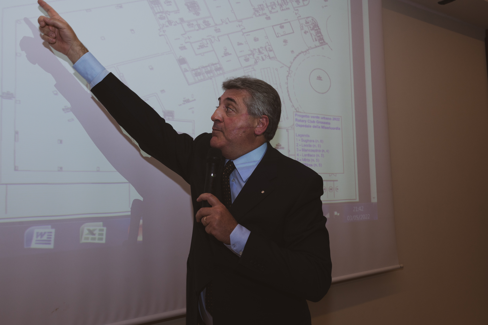 La serata ha visto anche l'intervento del socio Domenico Saraceno che ha ricordato come quest'anno l'impegno del Rotary Club di Grosseto sia rivolto proprio agli alberi e alla protezione della Natura, come più volte affermato dal presidente Marcello Pancrazi che, oltre alla salvaguardia del nostro pianeta, ha orientato i suoi interessi anche verso la riqualificazione e il potenziamento delle aree verdi di Grosseto (piantumazione nell'area dell'Infopoint all'ingresso degli scavi di Roselle e nell'area dell'Ospedale della Misericordia).