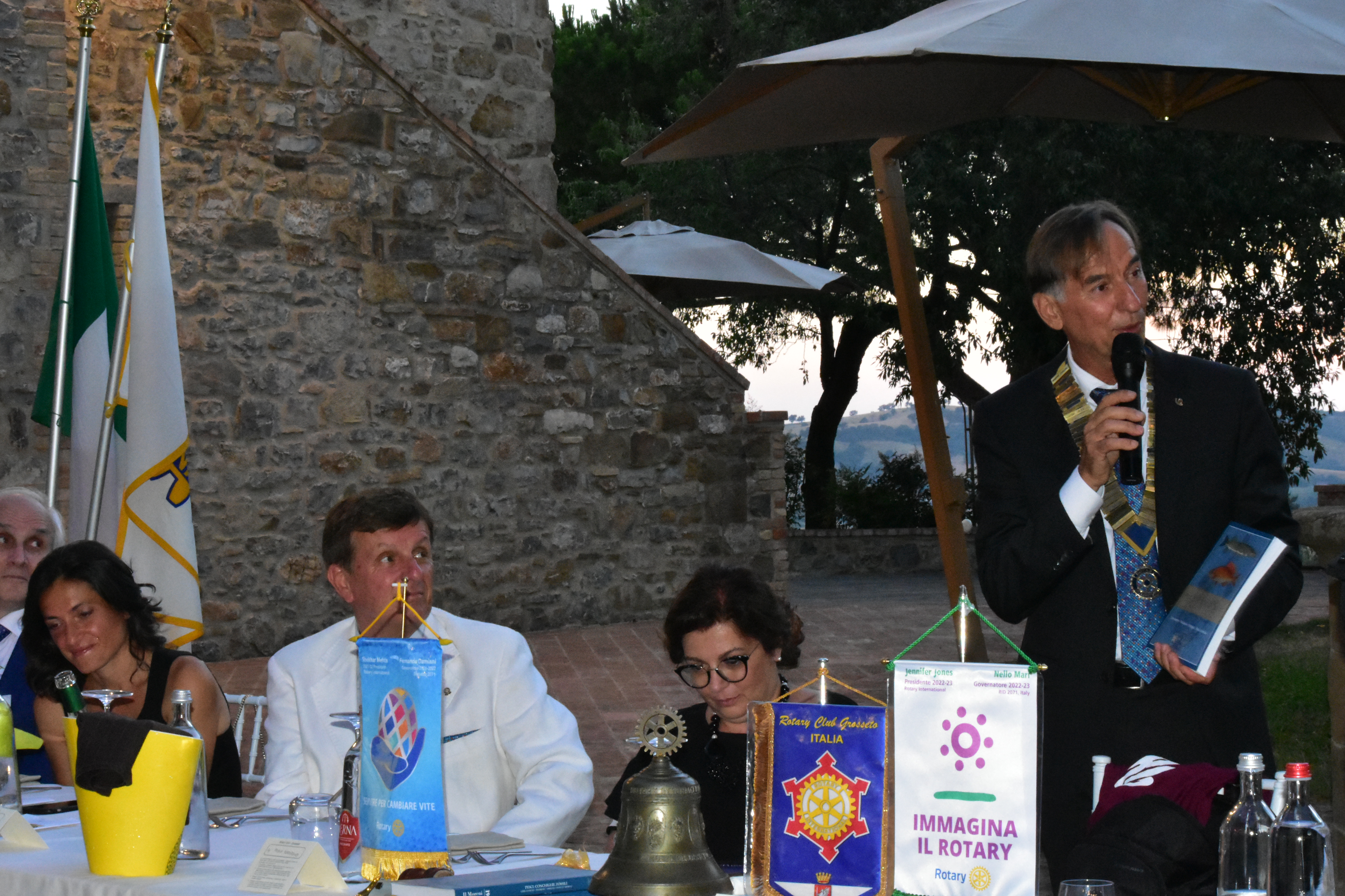 Prendendo la parola il nuovo Presidente, Massimo Ciancagli, ha indicato quali saranno le linee di azione dell’annata che sta iniziando, garantendo innanzi tutto continuità sui progetti iniziati. Ha quindi indicato alcune delle iniziative programmate nei primi mesi di presidenza, a partire dal progetto “L’unione fa lo sport, oltre le barriere” che è presentato in questi giorni, ad una particolare attenzione alla storia ed alla cultura, come fa fede la serata organizzata il 19 luglio al Cassero per sottolineare la rinascita di questa struttura, anche con una rappresentazione teatrale. E’ inoltre in fase organizzativa un progetto rivolto ai giovani, con la donazione di kit idroponici per la coltivazione delle piccole piante. Ovviamente in autunno torneranno i concerti con cui il Rotary fa omaggio alla città, e ci sarà anche la partecipazione ad un premio internazionale di direzione di orchestra.
